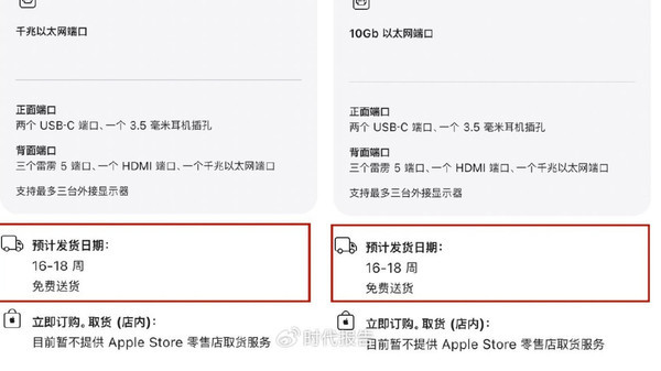 【CNMO科技音讯】近日,苹果Mac mini及Mac Studio系列居品在大师鸿沟内出现不同程度的发货延伸,部分高树立机型官网线路的瞻望投递工夫长达4至5个月。