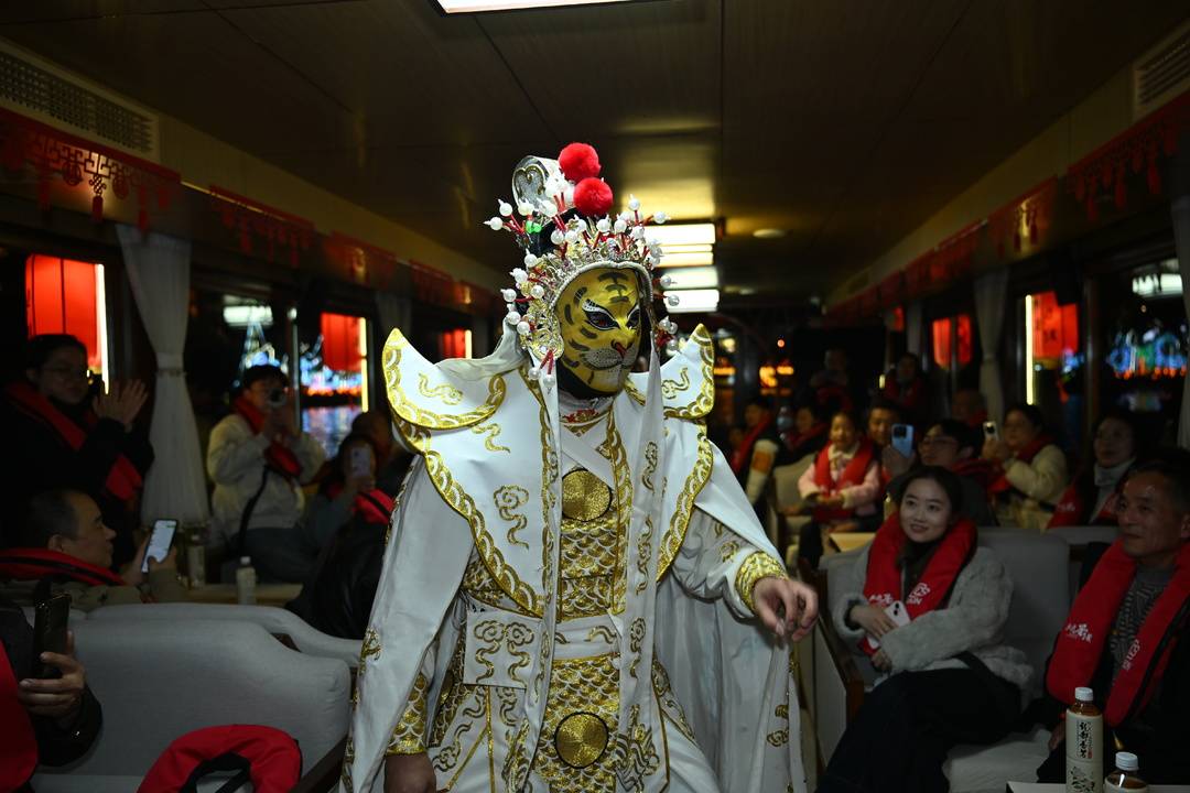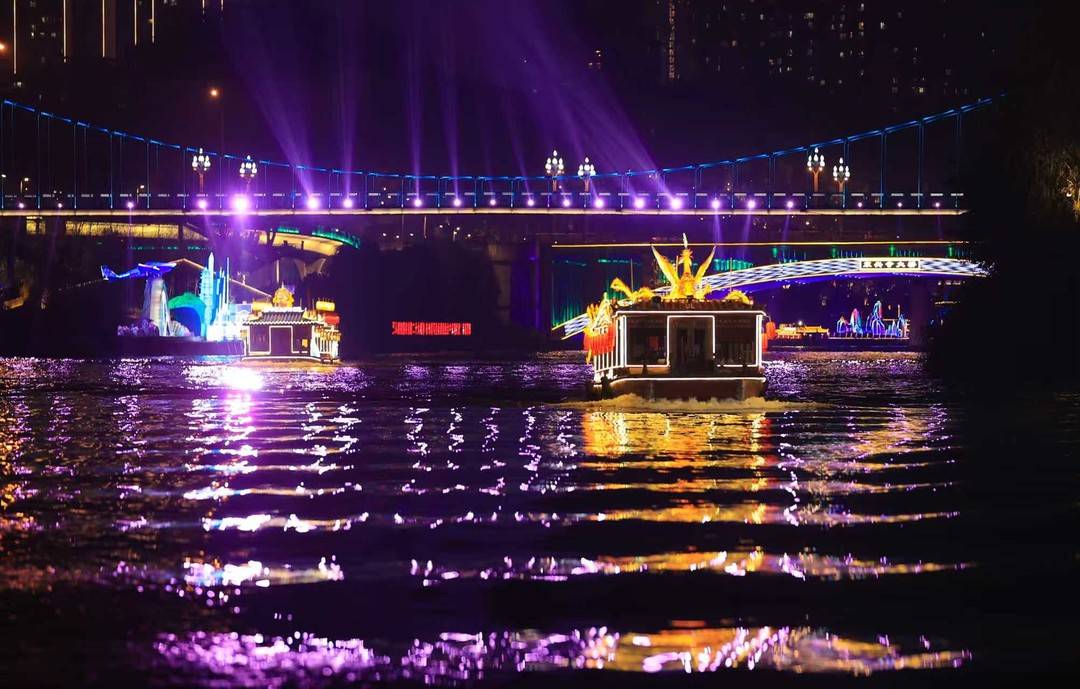 2月18日晚,大岁首二夜,自贡夜游釜溪迎来一大量外地旅客。赏汉服秀、看非遗扮演、游釜溪夜景。春节长假以来,夜游釜溪通过登船游览、节目扮演等一系列精彩行为,勾引沿河两岸旅客约5万东谈主次。