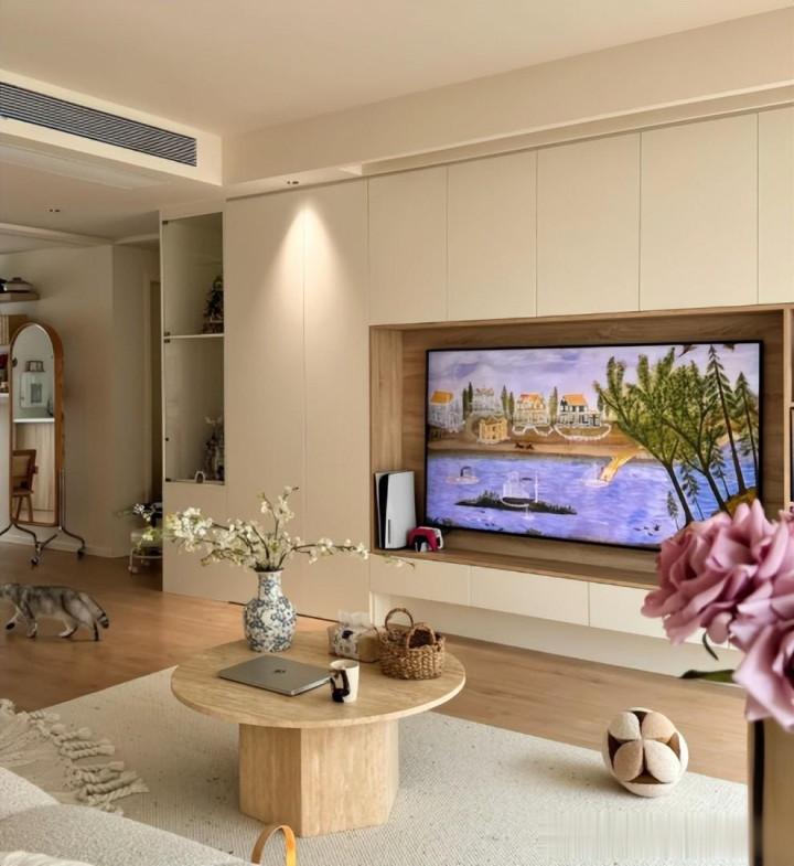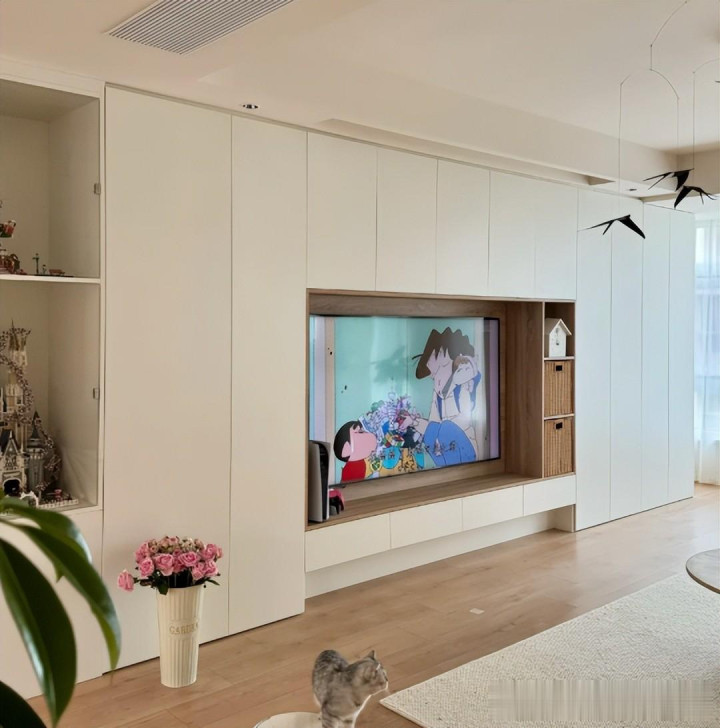 其时合计作念满墙电视柜性价比高,何况实用,家里的杂物皆备不错放在电视柜内部收纳。