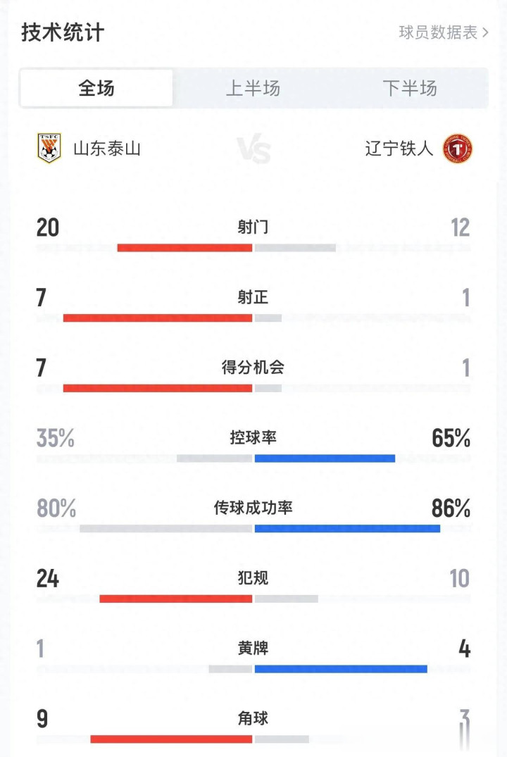 山东泰山队主场3:0校服辽宁铁东谈主,从比分上看是个大比分,但形状并不占优,控球率35%对65%。