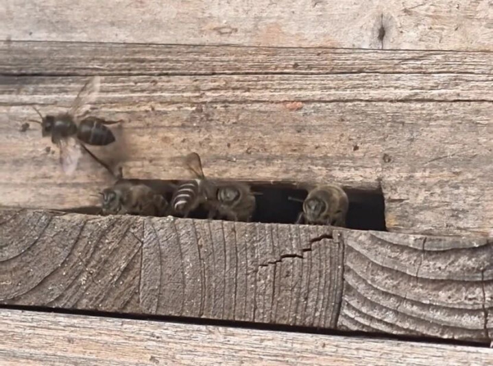 三只蜜蜂站在蜂巢的收支口,它们三在站岗,还懂得中间留出轻佻一定的空间,这么蜜蜂就不错从轻佻收支,而这三只即是蜂巢的守卫,崇拜不雅察它和采蜜的蜜蜂是不同的!