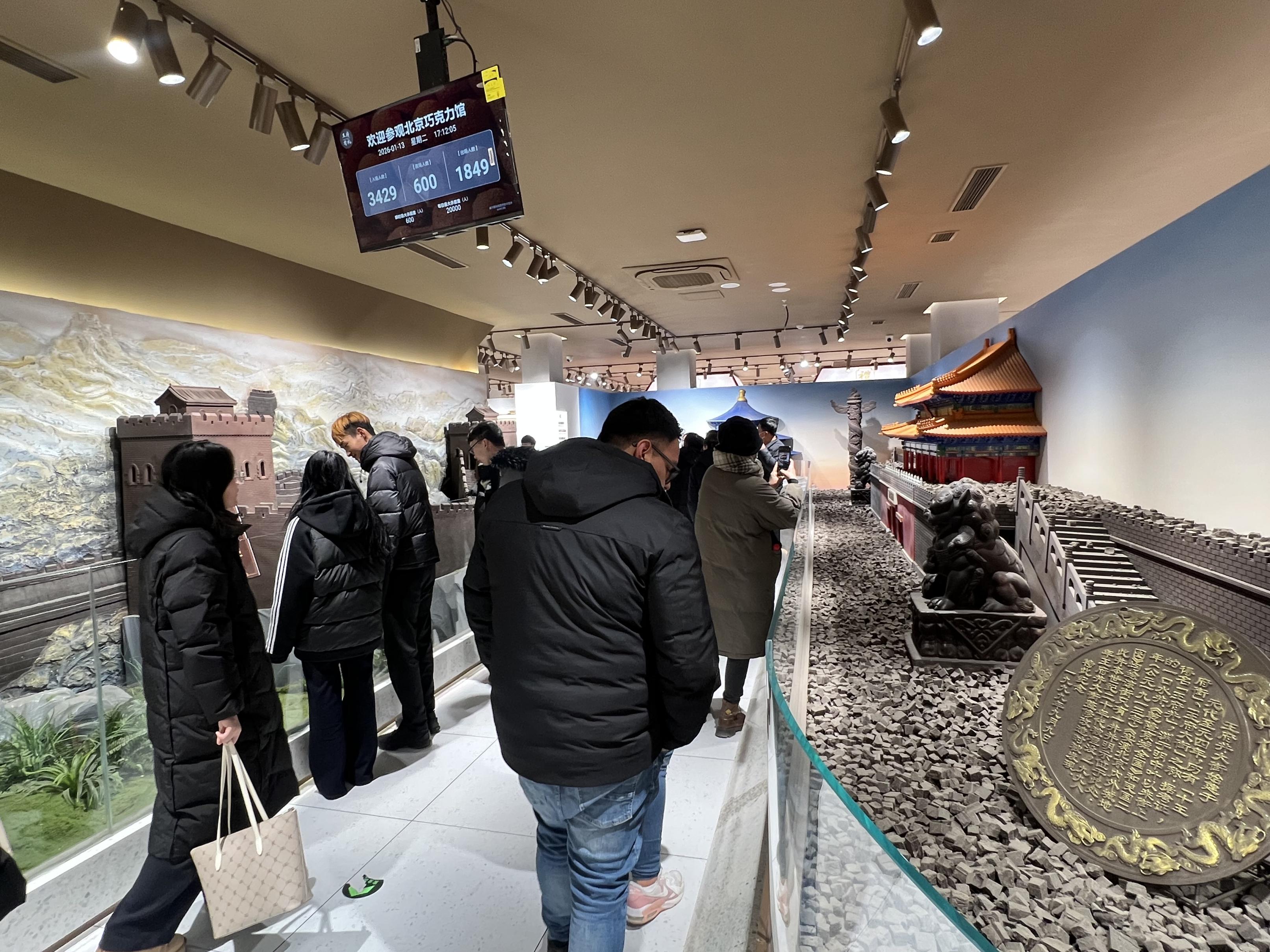 “这有一座巧克力长城!”“全是巧克力作念的!”走进食物阛阓,映入眼帘的巧克力微缩景不雅让东说念主不由得发出咋舌。只见巧克力制造出了万里长城、天坛祈年殿等地标性缔造的微缩景不雅,向里走去,还有以巧克力为原材料制作的知名画作、合欢瓶摆件、京剧脸谱和纸鸢,引得游东说念主纷纷藏身拍照。