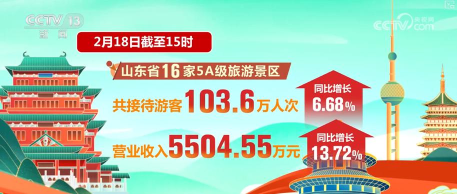 2月18日划定15时,山东全省要点监测的200家旅游景区理睬搭客386.2万东谈主次,买卖收入1.8亿元。16家5A级旅游景区诡计理睬搭客103.6万东谈主次,比较2025年正月初二同比增长6.68%,买卖收入5504.55万元,同比增长13.72%。